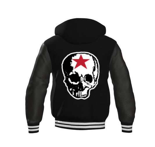 RG SKULL: HOODED VARSITY JACKET (BLACK)