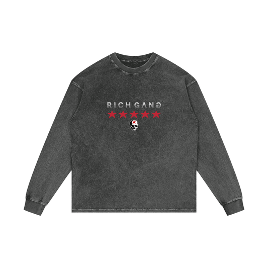 RG SKULL: LONG SLEEVE 5 STAR CREWNECK SHIRT